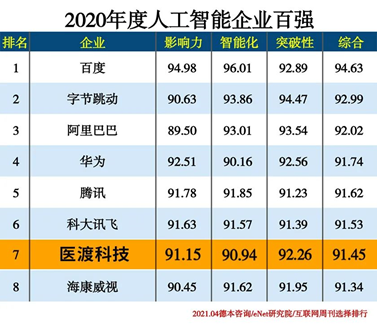 Yidu Tech ranked No.7 among the Top 100 artificial intelligence enterprises
