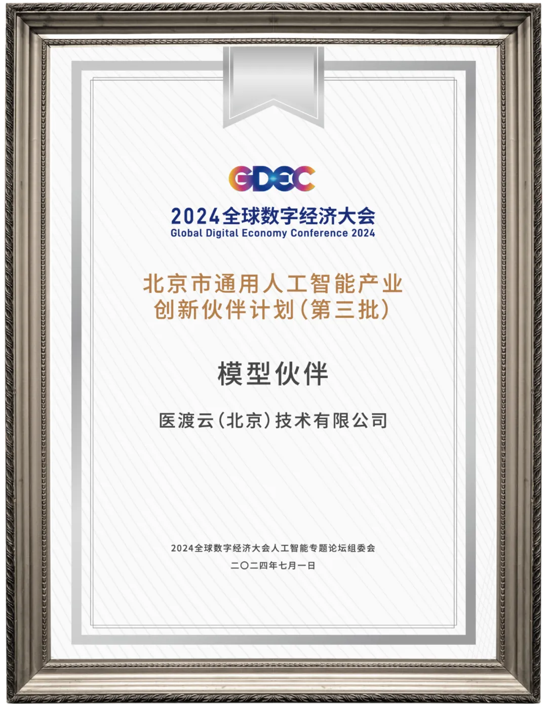 在2024全球數(shù)字經(jīng)濟(jì)大會(huì)人工智能專題論壇上,發(fā)布了“北京市通用人工智能產(chǎn)業(yè)創(chuàng)新伙伴計(jì)劃”(下稱“伙伴計(jì)劃”)第三批成員名單。醫(yī)渡科技憑借在AI醫(yī)療技術(shù)領(lǐng)域的突出表現(xiàn)和創(chuàng)新能力,特別是自主研發(fā)的醫(yī)療垂域大模型,成功入選“模型伙伴”陣營(yíng),成為該“伙伴計(jì)劃”的重要成員。