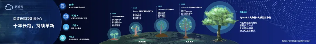 醫(yī)渡云在醫(yī)療大數(shù)據(jù)與人工智能這條跑道上探索和耕耘了十年。從2019年發(fā)布的第一代數(shù)據(jù)中心逐步發(fā)展到今天的Eywa4.0,Eywa這棵數(shù)據(jù)生命之樹(shù)已經(jīng)從一棵小樹(shù)苗長(zhǎng)成了參天大樹(shù)。